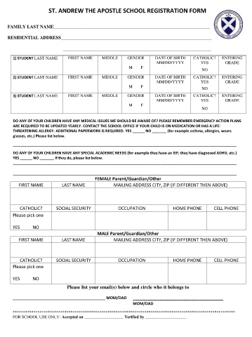 ST. ANDREW THE APOSTLE SCHOOL REGISTRATION FORM