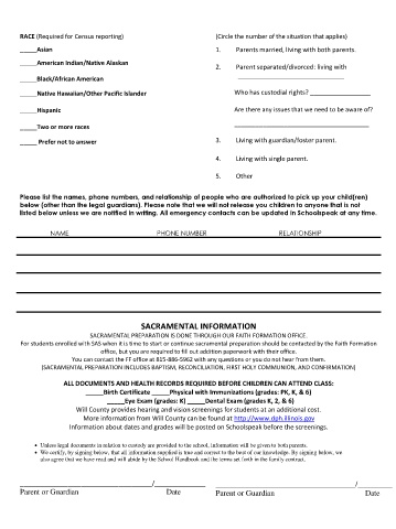 (SACRAMENTAL PREPARATION INCLUDES BAPTISM, RECONCILIATION, FIRST HOLY COMMUNION, AND CONFIRMATION)