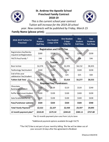FACTS Fee/Family * $46 $46 $46 $46 $46