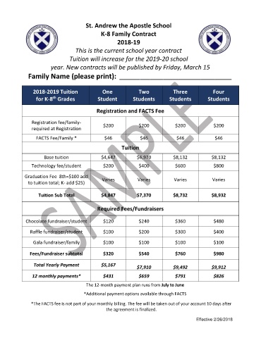 *The FACTS fee is not part of your monthly billing. The fee will be taken out of your account 10 days after
