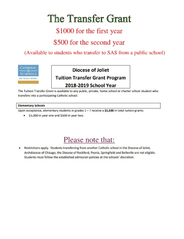 $1000 for the first year $500 for the second year (Available to students who transfer to SAS from a public school) Please note that: