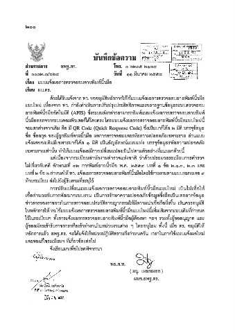 ดวยไดรับแจงจาก ทว. ขออนุมัติหลักการใหใชแบบแจงผลการตรวจสอบลายพิมพนิ้วมือ
