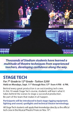 In this 10-week Stage Tech course, students will learn what it