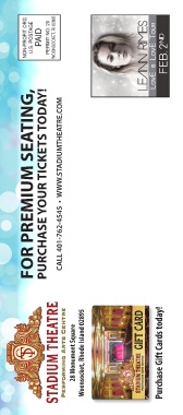 PURCHASE YOUR TICKETS TODAY! FOR PREMIUM SEATING, CALL 401-762-4545 • WWW.STADIUMTHEATRE.COM 28 Monument Square Woonsocket, Rhode Island 02895 Purchase Gift Cards today!
