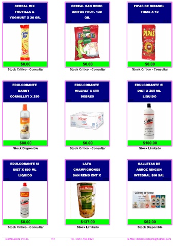 Distribuidora P.R.O. 141 Tel.: 0351-458-8927 E-Mail: distribuidorapro@hotmail.com