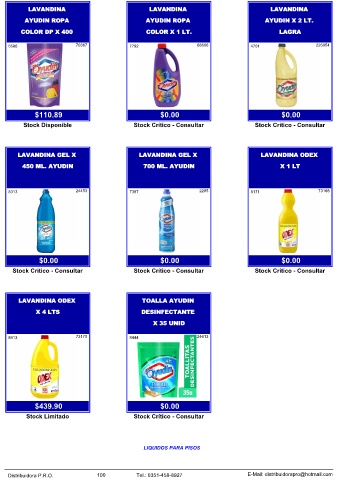 Distribuidora P.R.O. 100 Tel.: 0351-458-8927 E-Mail: distribuidorapro@hotmail.com