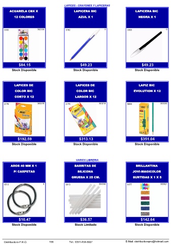 Distribuidora P.R.O. 166 Tel.: 0351-458-8927 E-Mail: distribuidorapro@hotmail.com