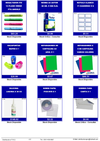 Distribuidora P.R.O.           177           Tel.: 0351-458-8927                    E-Mail: distribuidorapro@hotmail.com