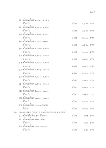 (ก) นํ้าหนักไมเกิน ๕๐๐ กิโลกรัม คันละ ๑๘๕ บาท