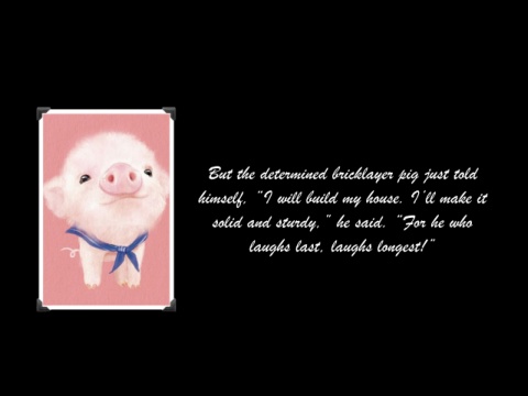But the determined bricklayer pig just told himself, “I will build my house. I’ll make it solid and sturdy,” he said. “For he who laughs last, laughs longest!”