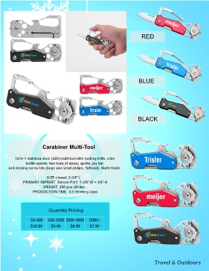 12-in-1 stainless steel (420) multi-tool with: locking knife, ruler,