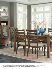 A. B. C. A. Flynnter Dining Room Set with 2 Tripton Upholstered Side Chairs D719-25-01-86-D530-02 | BOHO HAVEN | 97 ® B. Petrica Multi Wall Art A8000034 | C. Jehoram Blue Wood Table Lamp L327204