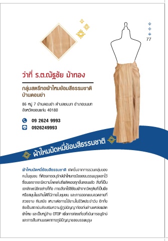 ผ้าไหมมัดหมี่สีธรรมชาติ ผ้าไหมมัดหมี่ที่ทอด้วยมือและความตั้งใจ ผ้าไหมมัดหมี่ย้อมสีธรรมชาติ เกิดขึ้นจากการรวมกลุ่มของ