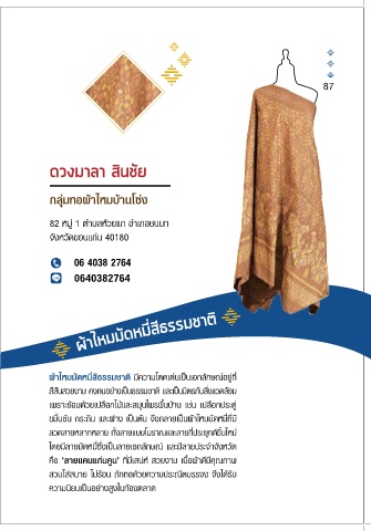 ต่อมาได้มีหน่วยงานภาครัฐเข้ามาสนับสนุน ท�าให้ผลิตภัณฑ์ โดยมีลายมัดหมี่ซึ่งเป็นลายเอกลักษณ์ และมีลายประจ�าจังหวัด