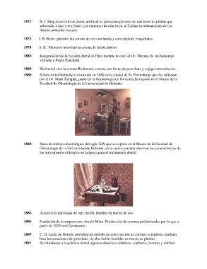 1871 B. J. Bing desarrollo un diente artificial de porcelana provisto de una barra de platina que