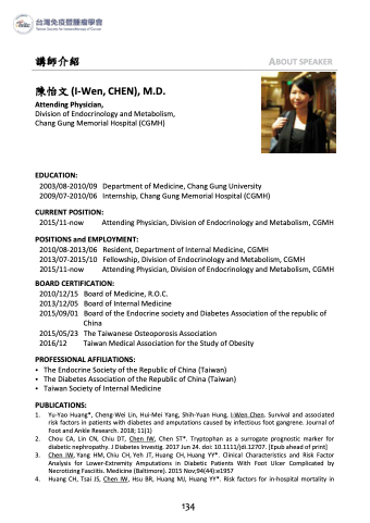 講師介紹 ABOUT SPEAKER 陳怡文 (I‐Wen, CHEN), M.D.