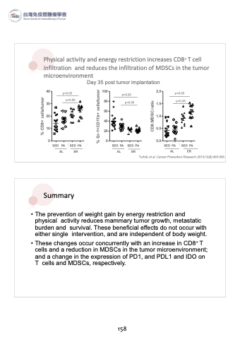 • The prevention of weight gain by energy restriction and physical activity reduces mammary tumor growth, metastatic burden and survival. These beneficial effects do not occur with either single intervention, and are independent of body weight.