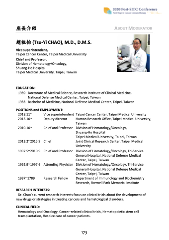 座長介紹 ABOUT MODERATOR 趙祖怡 (Tsu‐Yi CHAO), M.D., D.M.S.