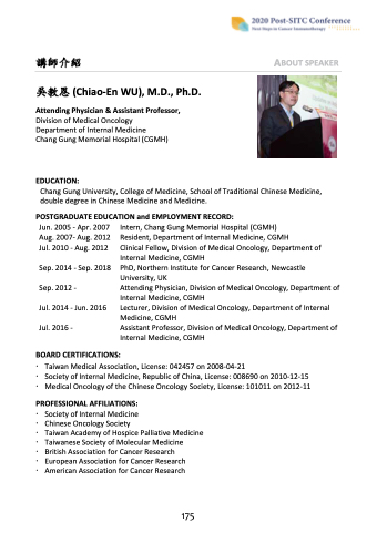 講師介紹 ABOUT SPEAKER 吳教恩 (Chiao‐En WU), M.D., Ph.D.