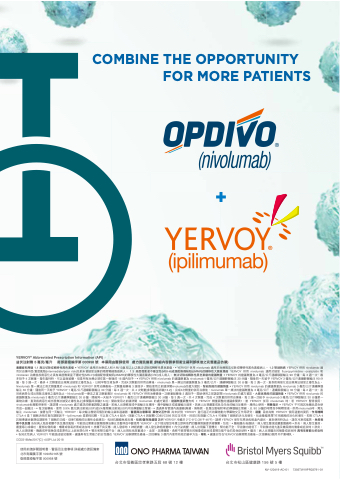 適應症和用途 1.1 無法切除或轉移性黑色素瘤 YERVOY 適用於治療成人和小兒(12歲及以上)之無法切除或轉移性黑色素瘤。 YERVOY 併用 nivolumab 適用於治療無法切除或轉移性黑色素瘤病人。 1.2 腎細胞癌 YERVOY 併用 nivolumab 適 用於治療中度/重度風險(intermediate/poor risk)先前未曾接受治療的晚期腎細胞癌病人。 1.3 高度微衛星不穩定性(MSI-H)或錯配修復缺陷(dMMR)的轉移性大腸直腸癌 YERVOY 併用 nivolumab 適用於接受 fluoropyrimidine、oxaliplatin 和 irinotecan 治療後疾病惡化之具有高度微衛星不穩定性(MSI-H)或錯配修復缺陷(dMMR)的轉移性大腸直腸癌(CRC)成人病人。 無法切除或轉移性黑色素瘤的建議劑量 YERVOY 的建議劑量為 3 毫克/公斤連續靜脈輸注 90 分鐘,每 3 週一次,最 多投予 4 次劑量。發生毒性時,可以延後給藥,但是所有治療必須在第一劑後的 16 週內投予。 YERVOY 併用 nivolumab 的建議劑量為 nivolumab 1 毫克/公斤連續靜脈輸注 30 分鐘,隨後同一天給予 YERVOY 3 毫克/公斤連續靜脈輸注 90 分 鐘,每 3 週一次,最多 4 次劑量或出現無法接受之毒性為止,以較早發生者為準。完成4次劑量的併用治療後,nivolumab 單一療法的建議劑量為 3 毫克/公斤,連續靜脈輸注 30 分鐘,每 2 週一次,直到疾病惡化或出現無法接受之毒性為止。 Nivolumab 單一療法之首次劑量應於 nivolumab 和 YERVOY 併用治療最後一次劑量給藥後 3 週投予。開始使用之前請詳閱nivolumab的處方資訊。腎細胞癌的建議劑量 YERVOY 併用 nivolumab 的建議劑量為 nivolumab 3 毫克/公斤連續靜脈 輸注 30 分鐘,隨後同一天給予 YERVOY 1 毫克/公斤連續靜脈輸注 30 分鐘,每 3 週一次,共 4 次劑量[參閱臨床試驗(13.2)]。完成4次劑量的併用治療後,nivolumab 單一療法的建議劑量為 3 毫克/公斤,連續靜脈輸注 30 分鐘,每 2 週一次,直 到疾病惡化或出現無法接受之毒性為止。Nivolumab單一療法之首次劑量應於 nivolumab 和 YERVOY 併用治療最後一次劑量給藥後 3 週投予。開始使用之前請詳閱 nivolumab 的處方資訊。大腸直腸癌的建議劑量 YERVOY 併用 nivolumab 的 建議劑量為 nivolumab 3 毫克/公斤連續靜脈輸注 30 分鐘,隨後同一天給予 YERVOY 1 毫克/公斤連續靜脈輸注 30 分鐘,每 3 週一次,共 4 次劑量。完成 4 次劑量的併用治療後,每 2 週一次給予 nivolumab 3 毫克/公斤靜脈輸注 30 分鐘單一 藥物治療,直到疾病惡化或出現無法接受之毒性為止[參閱臨床試驗(13.3)]。開始使用之前請詳閱 nivolumab 的處方資訊。建議劑量調整方式 YERVOY 劑量調整的建議參閱表1。當 YERVOY 併用 nivolumab 時,若 YERVOY 暫停使用, nivolumab也應暫停使用。請詳閱 nivolumab 處方資訊的劑量調整之建議。若病人出現輕度或中度輸注反應時,應中斷輸注或減緩輸注速率。若病人出現嚴重或危及生命的輸注反應時,應停止使用。用藥指示 YERVOY 不可與其他藥品混合使 用或一起輸注。 每次給藥後,使用 0.9% 氯化鈉注射液(USP)或5%葡萄糖注射液(USP)沖洗靜脈輸注管線。 透過具有管路內過濾器(無菌、無熱原、低蛋白質吸附率)的靜脈輸注管線,以 90 分鐘的時間投予稀釋溶液。併用nivolumab時,需先 輸注 nivolumab,接著在同一天輸注 YERVOY。每次輸注應使用個別的輸注袋和過濾器。警語與注意事項 藥物交互作用 尚未針對 YERVOY 進行過正式的藥物動力學藥物交互作用研究。過量 目前尚無 YERVOY 使用過量的資訊。作用機轉 CTLA-4 是 T 細胞活性的負向調節因子。Ipilimumab 是單株抗體,可以與 CTLA-4 結合,阻斷 CTLA-4 與配體 CD80/CD86 的交互作用。目前已知阻斷 CTLA-4 可增強 T 細胞的活化及增生,包含腫瘤浸潤T作用細胞的活化和增生。抑制 CTLA-4 訊號傳遞也會降低調節性 T 細胞的功能,促使T細胞的反應性全面增加,包括抗腫瘤免疫反應。包裝/儲存與處理 請將 YERVOY 冷藏於 2°C-8°C (36°F-46°F)。請將 YERVOY 保存在原始包裝盒內避光,直到使用時為止。請勿冷凍或搖晃。免疫相 關不良反應 告知病人免疫相關不良反應的風險,可能因此需要皮質類固醇治療以及暫停或中斷使用 YERVOY,以下情況發生時應立即與他們的醫療照護提供者聯繫。包括: 腸結腸炎/結腸炎:病人發生腹瀉或嚴重腹痛時 肝炎:病人發生黃疸、 嚴重噁心或嘔吐、腹部右側疼痛、嗜睡或容易淤青或流血時 皮膚不良反應:病人發疹時 神經病變:病人發生神經病變時 內分泌病變:病人出現腦下垂體炎、腎功能不全、甲狀腺功能低下、甲狀腺功能亢進及糖尿病的徵象或症狀時 肺炎: 病人出現咳嗽、胸痛或呼吸急促或是原有以上症狀惡化時 腎炎和腎功能不全:病人出現包括尿量減少、血尿、足踝腫脹、食慾不振等腎炎的徵象或症狀或是腎功能不全的其他症狀時 腦炎:病人出現腦炎的徵象或症狀時 具有生育能力的女性 告知女性病人 YERVOY 可能造成胎兒傷害。建議具有生育能力的女性應在 YERVOY 治療期間及最後一次投藥後 3 個月內使用有效的避孕方法。哺乳 建議女性在YERVOY治療期間及最後一次投藥後3個月內不要哺乳。