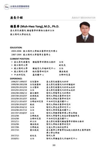 楊慕華 (Muh-Hwa Yang), M.D., Ph.D. 臺北榮民總醫院 腫瘤醫學部藥物治療科主任 國立陽明大學副校長