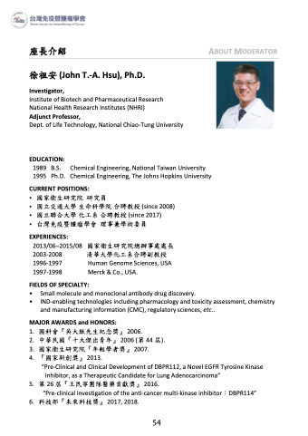 座長介紹 ABOUT MODERATOR 徐祖安 (John T.-A. Hsu), Ph.D.