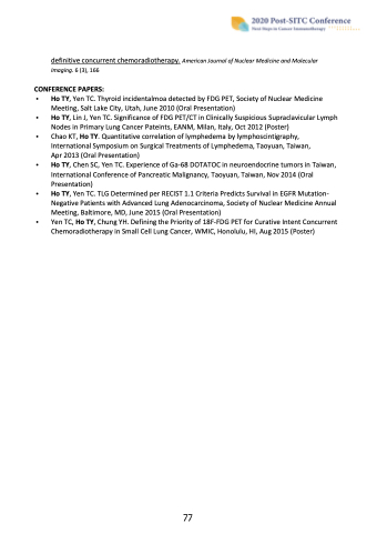 • Yen TC, Ho TY, Chung YH. Defining the Priority of 18F-FDG PET for Curative Intent Concurrent