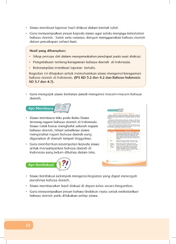• Siswa membaca teks pada Buku Siswa berkomunikasi? Adakah temanmu yang menggunakan dialek atau bahasa