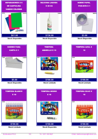 Distribuidora P.R.O. 183 Tel.: 0351-458-8927 E-Mail: distribuidorapro@hotmail.com