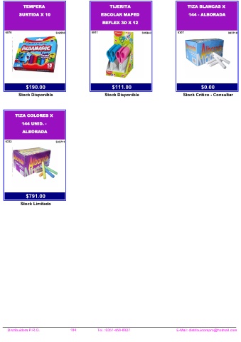 Distribuidora P.R.O. 184 Tel.: 0351-458-8927 E-Mail: distribuidorapro@hotmail.com