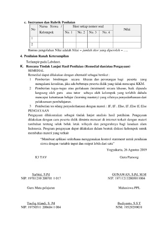 K. Rencana Tindak Lanjut Hasil Penilaian (Remedial dan/atau Pengayaan)