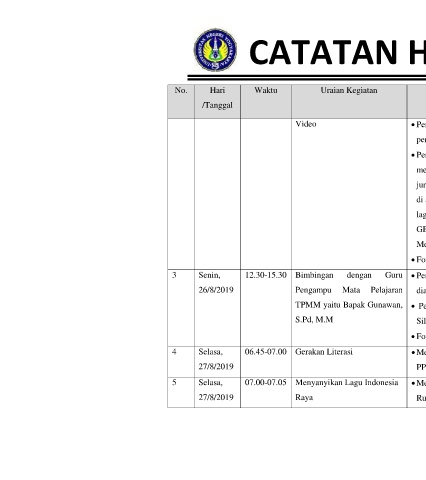 No. Hari Waktu Uraian Kegiatan Hasil Kualitatif / kuantitatif Keterangan