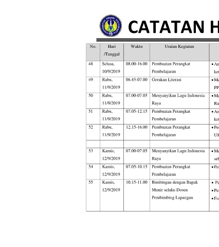 No. Hari Waktu Uraian Kegiatan Hasil Kualitatif / kuantitatif Keterangan