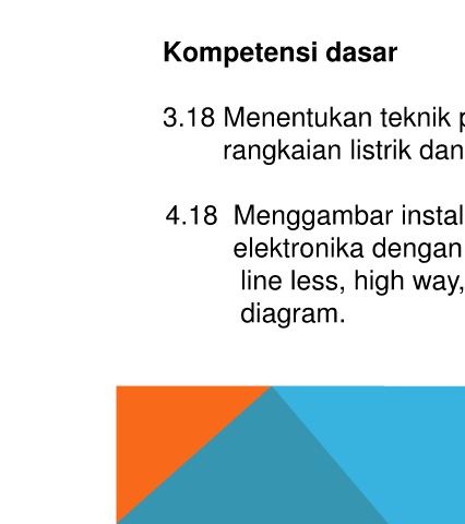Kompetensi dasar 3.18 Menentukan teknik penggambaran rangkaian listrik dan elektronika 4.18 Menggambar instalasi listrik dan rangkaian elektronika dengan methoda : point to point, line less, high way, baseline, logika, blok diagram.