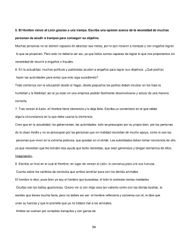 8. Escriba un final en el cual el Hombre, en lugar de vencer al León, lo convenza para unir sus fuerzas.