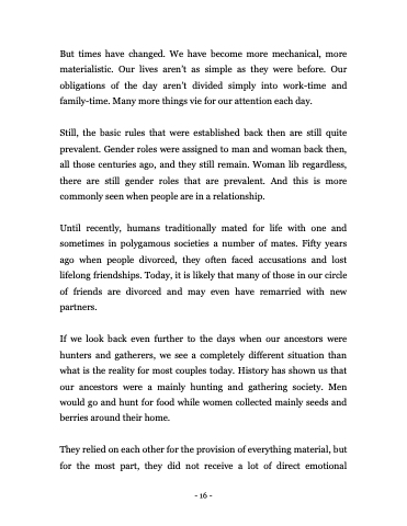 If we look back even further to the days when our ancestors were hunters and gatherers, we see a completely different situation than what is the reality for most couples today. History has shown us that our ancestors were a mainly hunting and gathering society. Men would go and hunt for food while women collected mainly seeds and berries around their home.