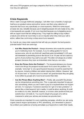 crisis keywords are equally, if not more important because you’re targeting people