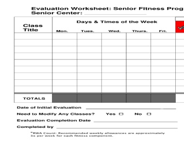 Evaluation Worksheet: Senior Fitness Program Effectiveness