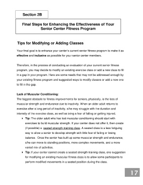 Your final goal is to enhance your center’s current senior fitness program to make it as