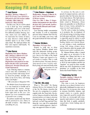 Mondays, January 2-March 27, Wednesdays, January 4-March 29, pared to other Tai Chi styles, has rela-