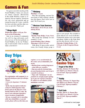 Games & Fun South Whidbey Center January/February/March Schedule
