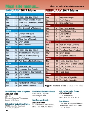 JAN UARY 2017 Menu F EBRUARY 2017 Menu