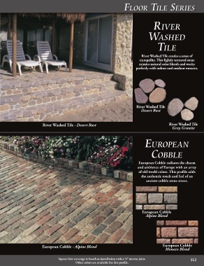 111 Square foot coverage is based on installation with a ½" mortar joint. Square foot coverage is based on installation with a ½" mortar joint. 112