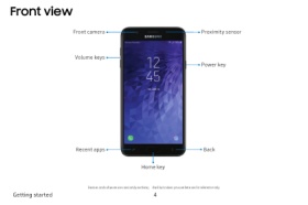 Front view Front camera Proximity sensor Volume keys Power key Recent apps Back Home key Devices andsoftwareareconstantly evolving—theillustrations youseehereareforreferenceonly. Getting started 4