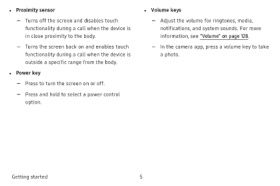 – Turns off the screen and disables touch – Adjust the volume for ringtones, media,