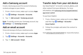 Create a Samsung account for access to Samsung Use Smart Switch to transfer contacts, photos, and