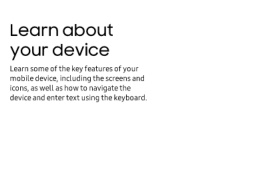 Learn about your device Learn some of the key features of your mobile device, including the screens and icons, as well as how to navigate the device and enter text using the keyboard.