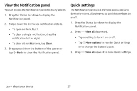 View the Notification panel Quick settings