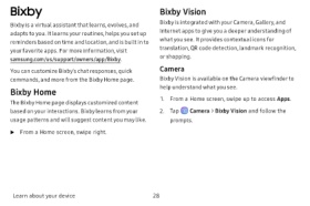 based on your interactions. Bixby learns from your 2. Tap Camera > Bixby Vision and follow the
