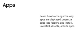Apps Learn how to change the way apps are displayed, organize apps into folders, and install, uninstall, disable, or hide apps.